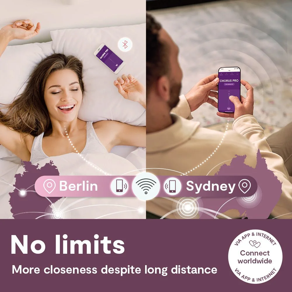 Η δωρεάν εφαρμογή We-Vibe σάς δίνει πλήρη έλεγχο του Chorus Pro—από την άλλη άκρη του δωματίου ή από όλο τον κόσμο. Προσαρμόστε τις δονήσεις, αλλάξτε λειτουργίες και παίξτε μαζί ανεξάρτητα από την απόσταση, προσθέτοντας μια νέα διάσταση σύνδεσης στην οικειότητά σας.