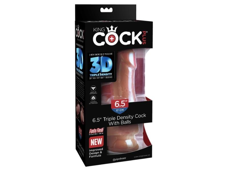 Το Ρεαλιστικό Ομοίωμα Πέους King Cock Plus Τριπλής Πυκνότητας είναι κατασκευασμένο από νέο και βελτιωμένο υλικό Fanta Flesh, καθιστώντας το άκαμπτο εσωτερικά και απαλό εξωτερικά.