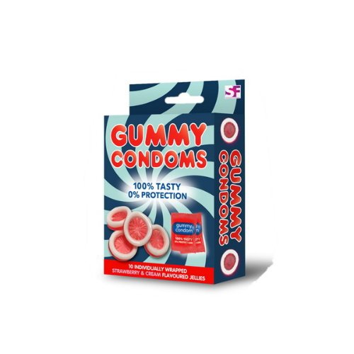 Τσίχλες με γεύση φράουλας και όψη προφυλακτικού. Μην τις χρησιμοποιείτε σαν αληθινά προφυλακτικά.